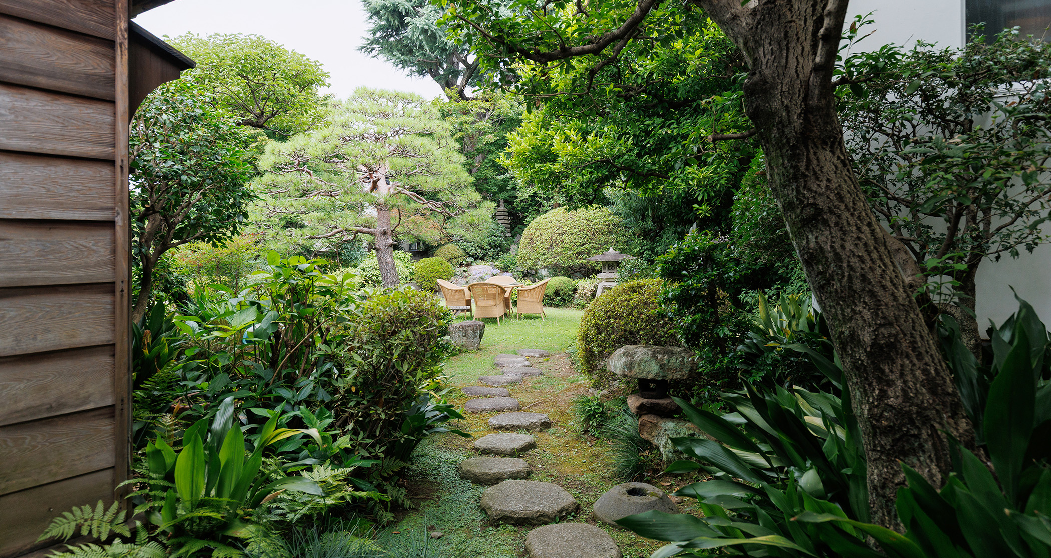 四季折々に豊かな表情で魅せる日本庭園です。春には梅、夏は紫陽花、秋は紅葉などが彩ります。池や岩石などを巧みに配置し、日本の美しい情景を表現しています。庭には木々に引き寄せられた小鳥たちが舞い降り、軽やかで美しいさえずりを響かせます。池には奉納されたうなぎが暮らしています。