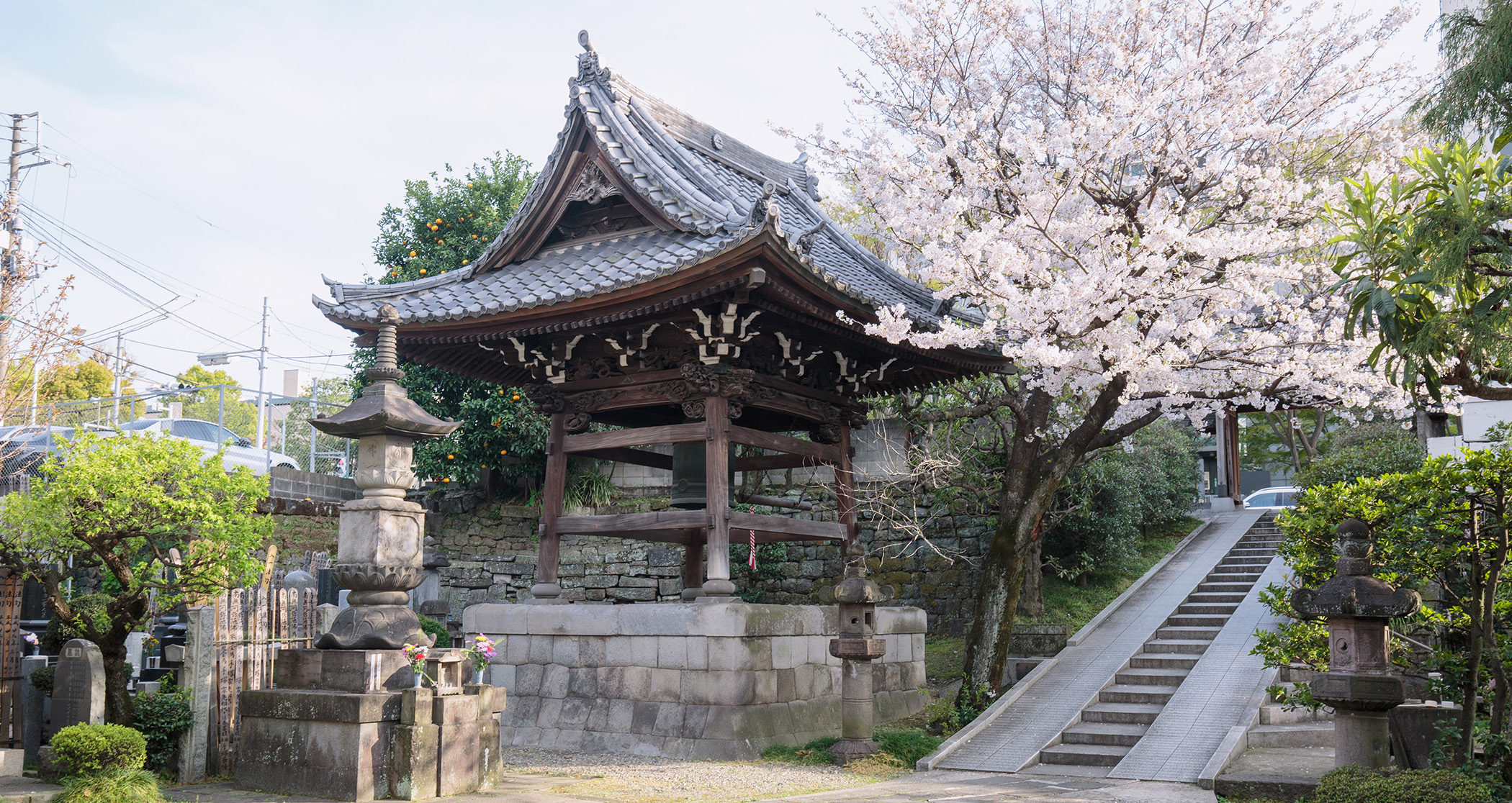 鐘楼は江戸後期の文政八(一八二五)年に建立しました。唐獅子と牡丹の籠彫や波と亀をモチーフとした虹梁など、当時の貴重な彫刻が施されています。弘化二(一八四五)年の青山の火事にも焼失することなく、当時の美しい姿を今に遺します。戦時下には金属回収令が公布され、この鐘も供出しましたが、使われることはなく戦後戻ってくることができた貴重な鐘となります。
