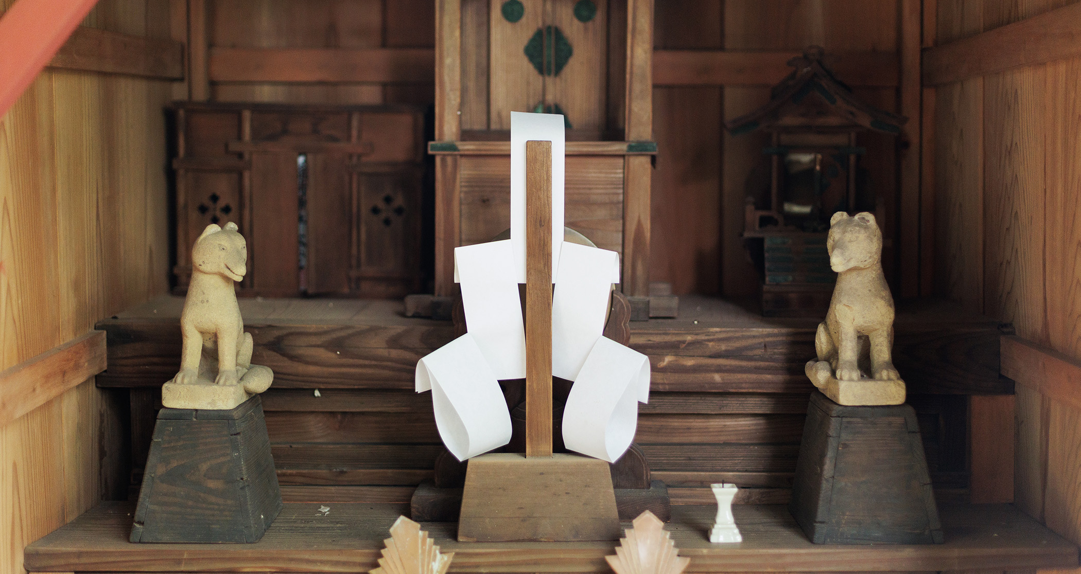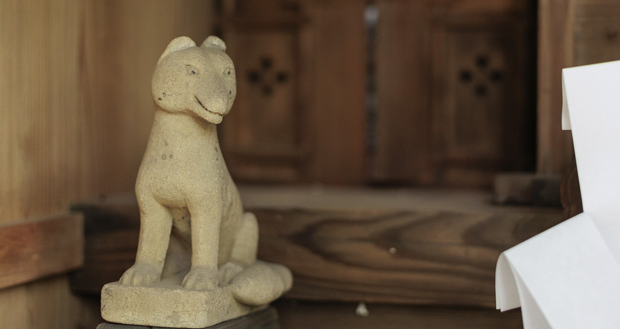 龍原寺の庭園の片隅に昔からいるお稲荷さん。同じく三田一丁目にある元神明宮様から毎年御札をいただき、大切に祠に祀られています。お稲荷さんの足元には作者と思われる「鉄五郎」の名が刻まれています。古くからある祠のため残された文献が少なく、造られた年代やいわれ等は明確にされていません。